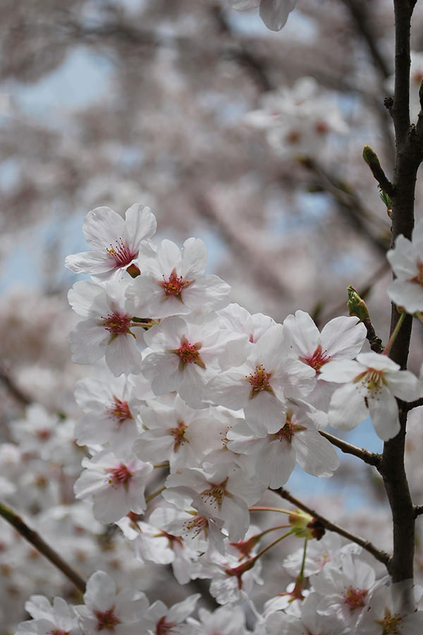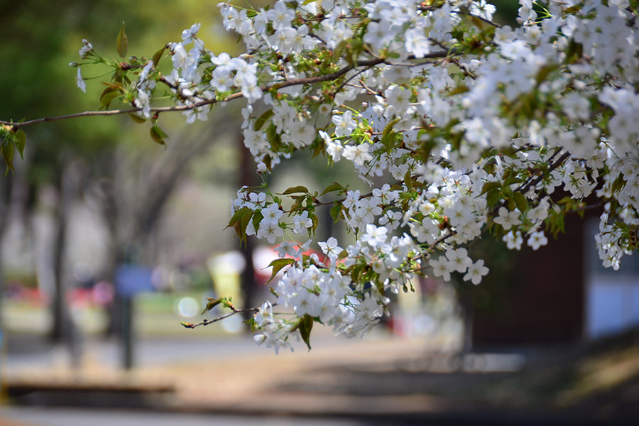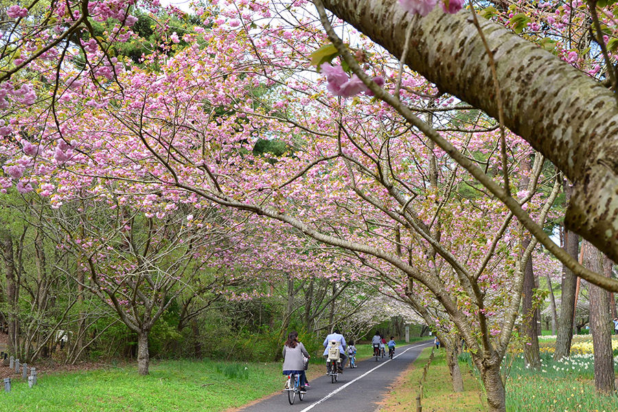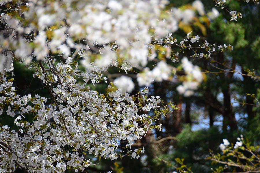 園内ではソメイヨシノ、ヤエザクラ、オオシマザクラなどの種類のサクラがご覧いただけます。