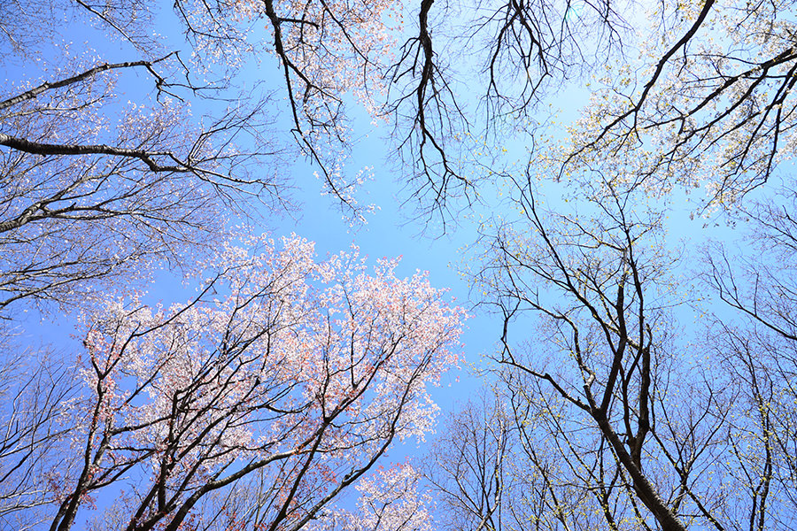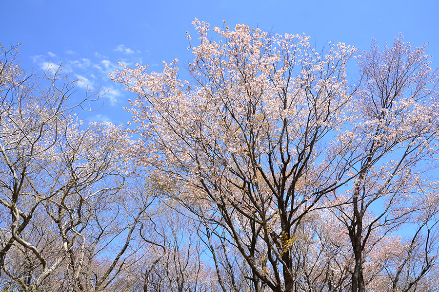 また、樹林エリアにはヤマザクラの巨木林があり、美しい新緑の中、頭上に広がる天空の花風景をお楽しみいただけます。