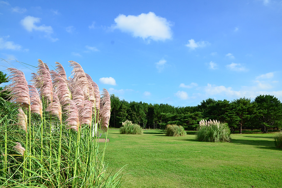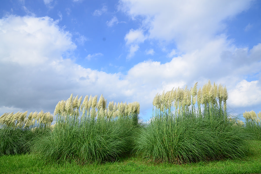 本公園では、白銀色や桃色の穂を付けるパンパスグラスもご覧いただけます。