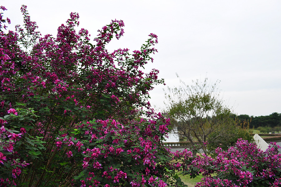 マメ科ハギ属 東南アジアが原産と考えられている落葉低木です。 紫色で蝶のような形をしたかわいらしい小花を枝いっぱいに咲かせます。 鑑賞時期 10月上旬から10月中旬 場所 記念の森レストハウス周辺、ひなの林園路沿い