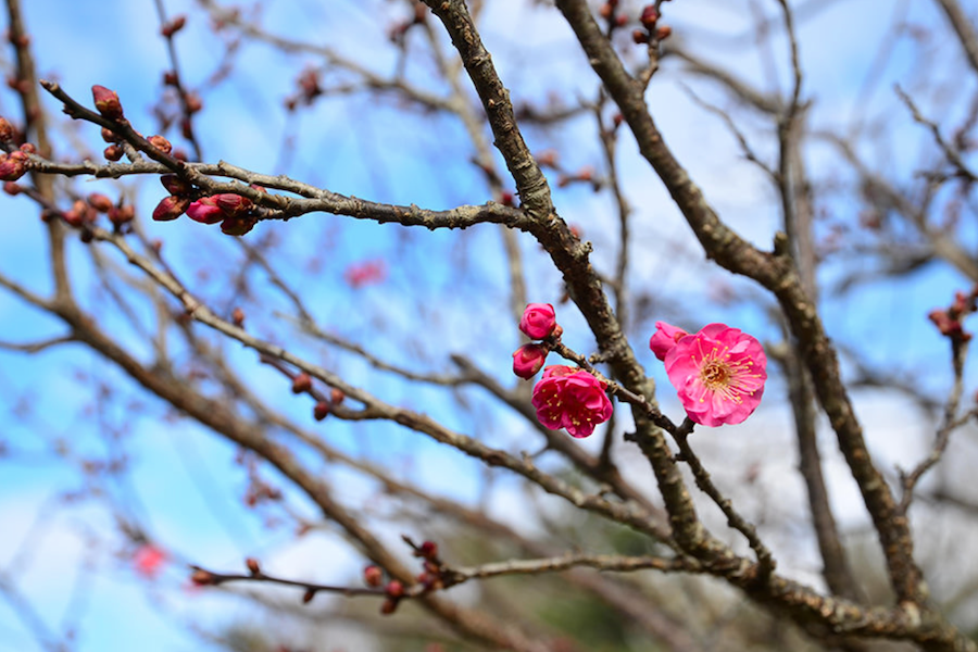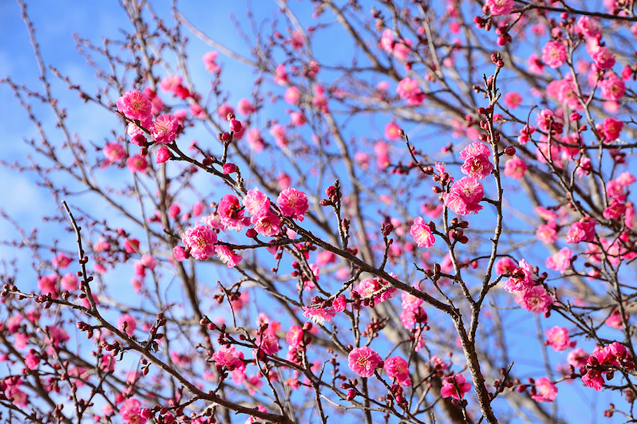バラ科サクラ属 寒さに強い落葉小高木。春先に咲く花からは良い香りが漂います。日本では古くから改良が進められ、鉢植えや庭木、盆栽などさまざまな楽しみ方があります。また、6月頃のまさしく「梅雨」の時期に実をつけます。 本公園では、西口エリアのスイセンガーデン周辺でご覧いただけます。 鑑賞時期 1月下旬から3月中旬 場所 スイセンガーデン周辺