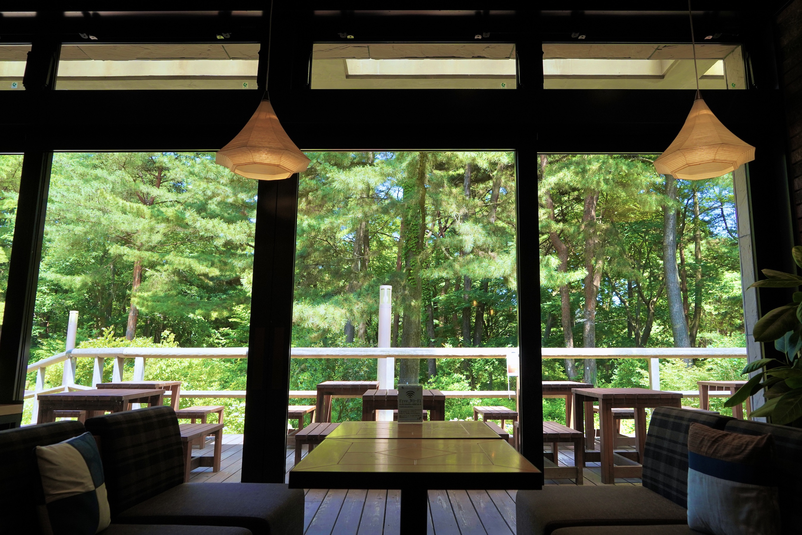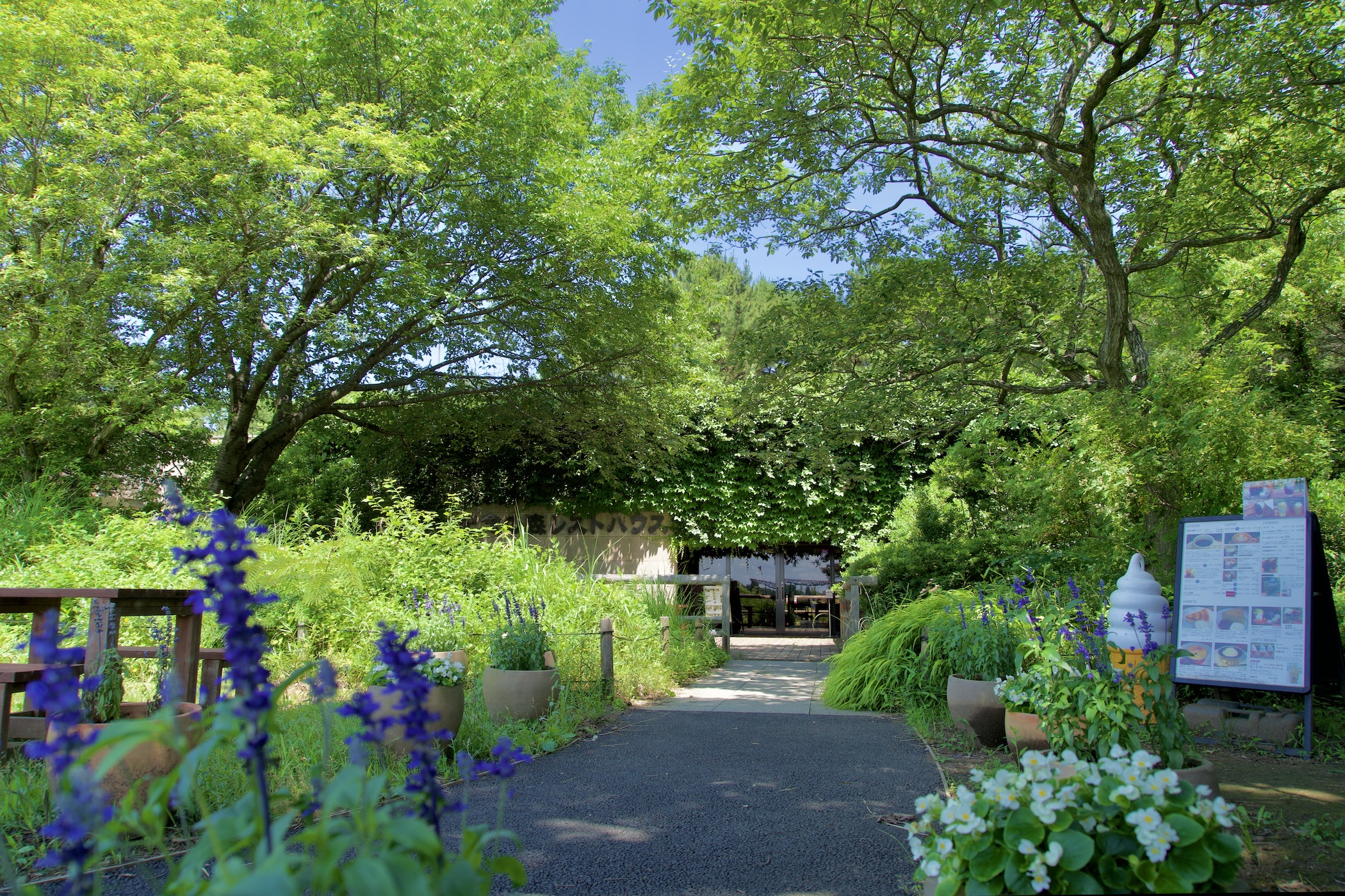 天皇陛下ご成婚を記念し、平成9年4月にオープンした、記念の森の中に静かにたたずむカフェテラスです。松林の中に降り注ぐ木漏れ日と、周囲に広がる記念の森散策路の花々に囲まれながら、オリジナルブレンドの珈琲や県産素材を使ったデザートなどを味わってみませんか。デッキの前には、水盤が設置してあり、メジロをはじめ様々な野鳥が水浴びする姿を見ることができます。平成29年3月8日リニューアルオープンしました。