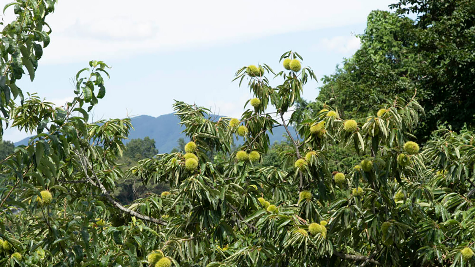 体験の際は、虫さされや栗のイガによる怪我を防ぐために長袖・長ズボンがおすすめです。足元は長靴か、厚めの底のスニーカーで万全に。栗畑に到着すると、足元には熟した栗がたくさん落ちています♪新鮮な栗を見つけるポイントは、実のハリとツヤ。じっくり観察してみてください。「丹沢」や「利平」など、品種ごとの違いにも注目してみてください。
