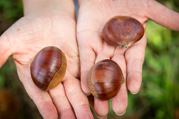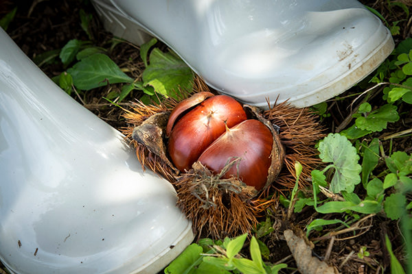 これだ!という実を見つけたら、イガの中から取り出しましょう。靴でイガの端を上手に踏んで外側へ広げるようにしたら、出てきた栗の実をトングで掴んでカゴへIN。上手に取り出せた時の気持ち良さも栗ひろいの楽しみなんです。ひろった栗は、量り売りでお持ち帰り可能。茹で栗に、栗ご飯に、お菓子にと、美味しくいただいてください♪栗ひろいは10月上旬まで楽しめます。