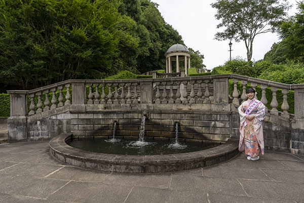 七ツ洞公園は、水戸市北西部にある、日本でも珍しい英国式庭園です。園内には北から南にかけて4つの池と、池を隔てる5つのダムがあり、上流から下流へと水が流れています。公園最南部には、英国建材を使用したパビリオンがそびえ立ち、まるで古代ローマのような非日常空間は、フォトスポットとしても人気です。
