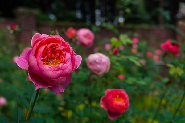 園内にある円形の庭園「秘密の花苑(はなぞの)」では、季節によって様々な花を見ることができます。七ツ洞公園を代表するイングリッシュローズは、約50品種約170株植えられており、春と秋に見頃を迎えます。色鮮やかに咲いた花々は、見るだけでなく、上品な香りも楽しむことができます。園内を歩き疲れた際は、花園内のベンチに座って、秋の訪れを感じてください。