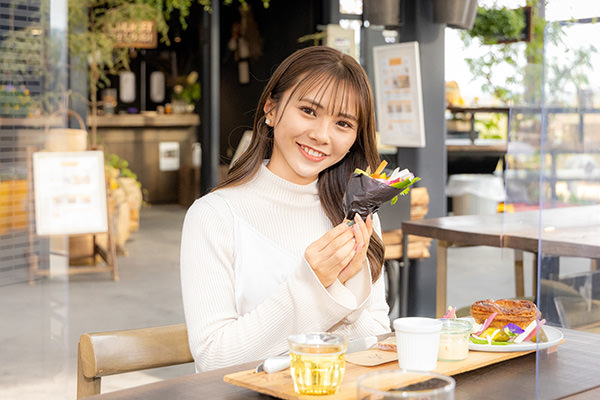 レストラン ローズファーム ハウスは「バラ農家に招かれる」がコンセプト。地元八郷や茨城県産の素材を生かした料理を提供しています。人気のランチセットは、シェフが季節に応じて提案するメニューからお好きなメインディッシュを選択。新鮮な地元の野菜を花束に見立てたブーケサラダは、見た目も華やか。園内の好きな場所で食事ができるので、花に囲まれたベンチや落ち着ける場所を見つけて、自然を感じながら食事を楽しめます。