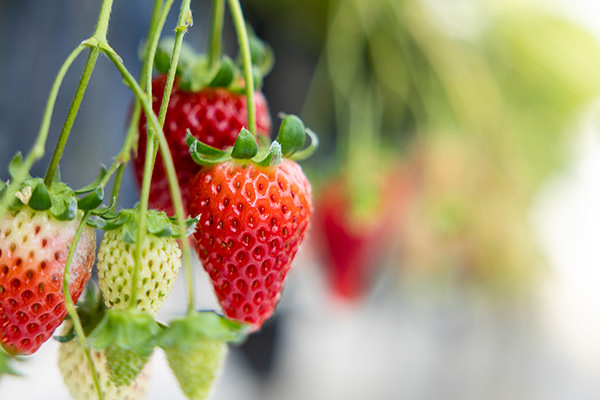 美味しいいちごを選ぶ際のポイントは、色と表面のつぶつぶに注目。色は、果肉の先までムラなく赤く鮮やかであること。つぶつぶの周りの果肉は、ぷっくりしているものが美味しいのだそう。甘そうないちごを見つけたらツルの部分を切るか、実を上に向けてヘタ部分を下にしたら、そのままそっと引き下げてお口にポイっ。椅子やテーブルも用意されているので、時間たっぷりいちごを楽しめます。