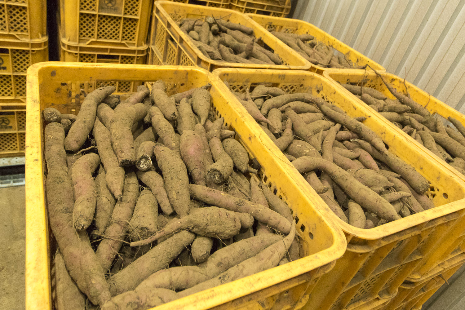 現在、多くのほしいも農家では、サツマイモは収穫してすぐには使いません。低温熟成させることで、サツマイモの中のデンプンを糖化しやすく処理。より甘味を引き出すため冷蔵庫で低温熟成を行います。