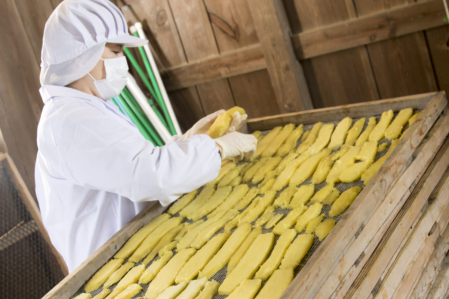 天日干しで乾燥する農家もあれば機械を使って乾燥を行う農家もあります。現在のほしいもはウェット感を残し、しっとりとやわらかく仕上げるのが主流です。