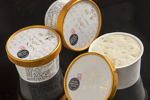 一年中ほしいもを忘れないで欲しいと誕生した「ほしいも農家のみるくアイス」は380円。