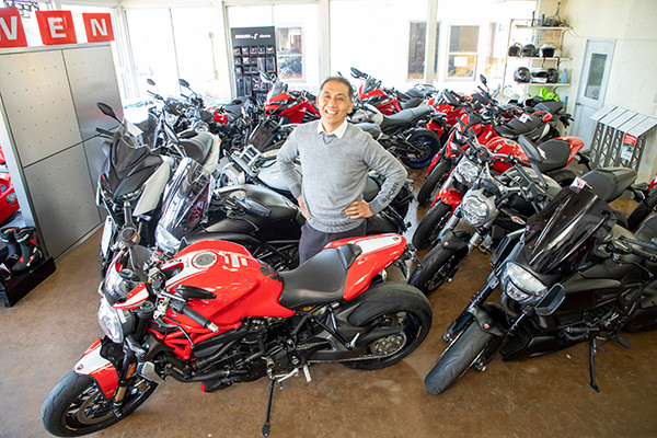 オープン当初は「本当に狭い、小さなお店でした」と高野さん。店頭には原付を中心に並べ、なるべく新規のユーザーや若年層にも立ち寄ってもらいやすいお店を目指しました。「バイクを好きな人は、好きな人同士で集まることが多い。だからなかなか新規の人が入って来づらい雰囲気があったりする。そういうのに思うところがあった」(高野さん)。小さなお店だからこそお客さんとの距離が近いのも利点。フレンドリーな雰囲気で、色んな人が遊びに来てくれたそう。2004年3月に現在の場所に移転してからは店舗も拡大。また2009年にはファンの多い高級バイクメーカー「DUCATI」の正規販売店の看板も掲げたことで県内外からお客さんが足を運ぶ店になりました。