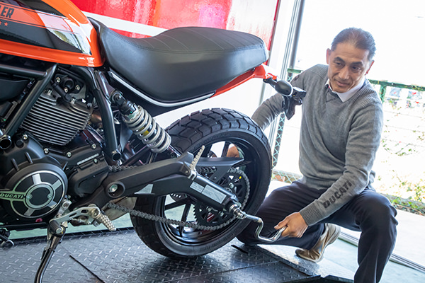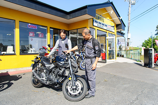 最近は40代〜50代の“リターンライダー”が増えていることもあって、原付や小型よりも中型以上のバイクが人気を集めています。リターンライダーとは、若い頃バイクに乗っていたけれど色々な事情でバイクから離れ、年を重ねた後に時間やお金が自由に使えるようになったことでまたバイクに乗りたいと戻って来る人たちのこと。また、「あの頃は憧れていたけれど乗れなかったバイクに今なら乗れる」という人も。そんな方にも安全に、無理なくバイクライフを楽しんでもらえるよう高野さんは配慮を欠かしません。「バイクは高いものがいいものとは限りません。それに、パワーがあるものが必ずしもよいとは言えません。乗り方とか体型、体力に合ったバイクを選ぶのが大事。ケガをしないか心配する人もいますが、自分に合ったバイクを安全に、ルールを守って楽しめば大丈夫です」。
